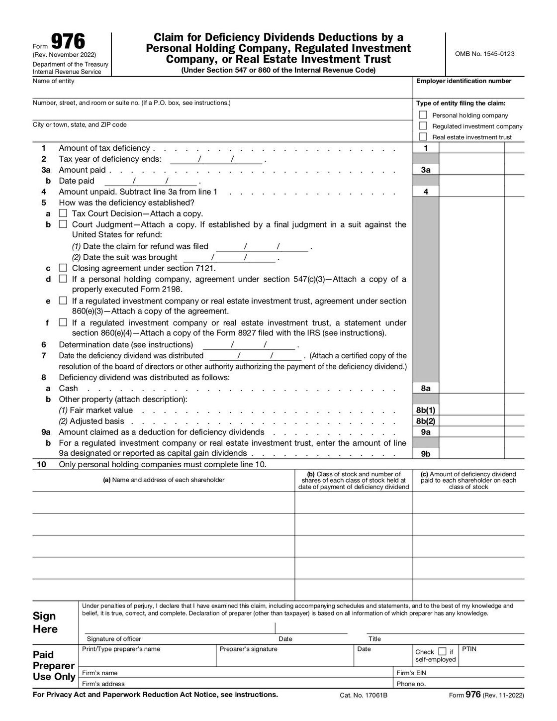 Form 976 is a tax form taxpayers use to report their tax liabilities.