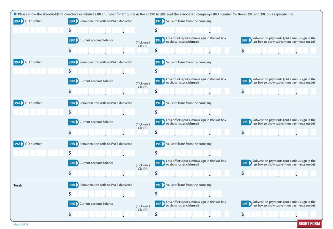 Form IR4S is used to provide details of the shareholders, directors or relatives, and the associated company’s IRD number.