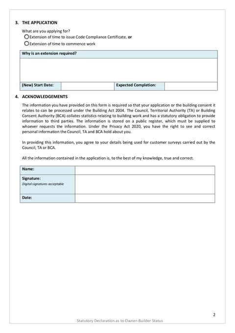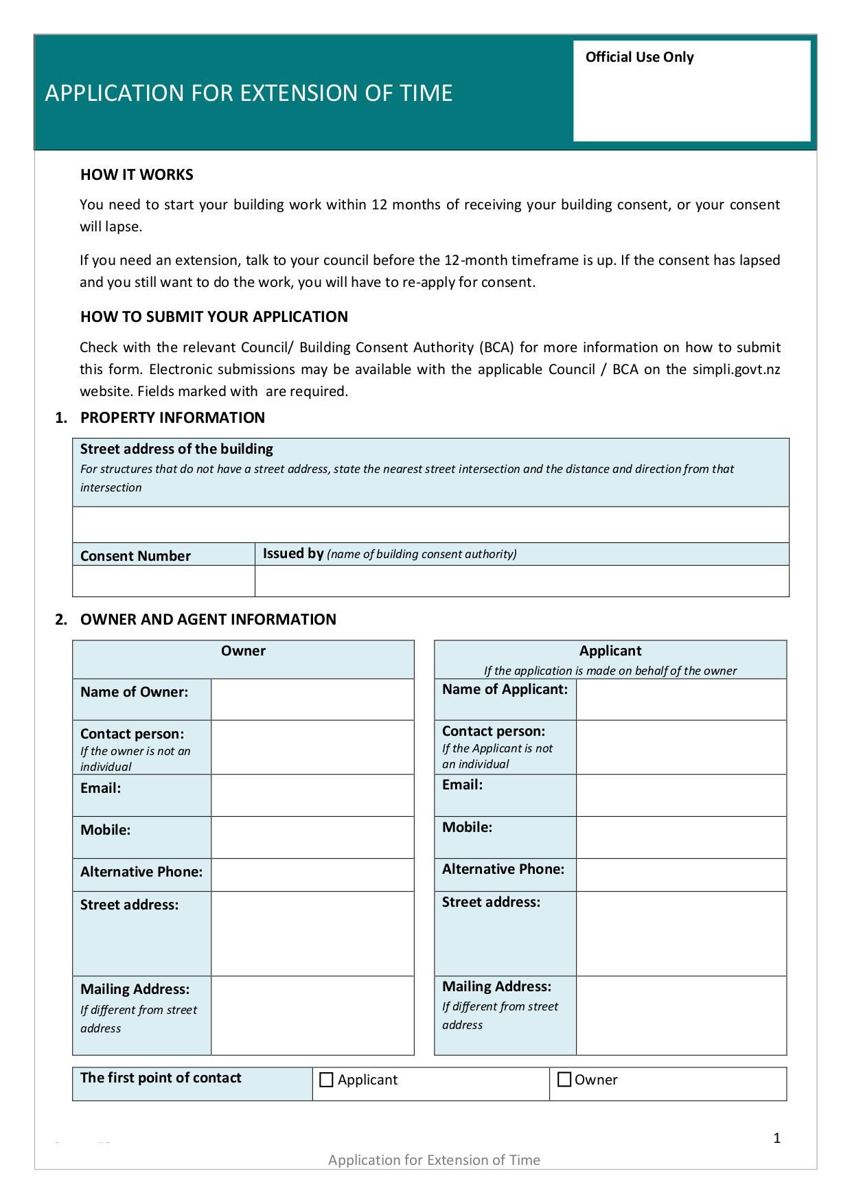 Application form for requesting an extension of time.