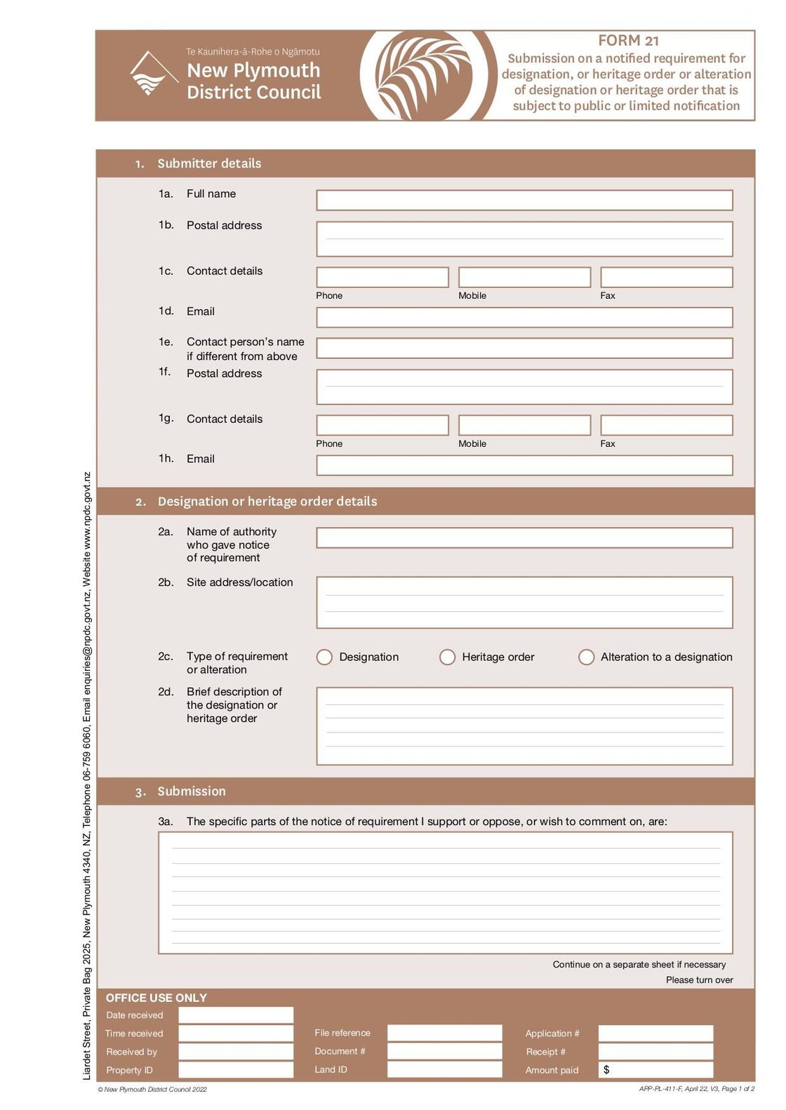 Application Form 21 Submission on a Notified Requirement for Designation - Apr 2022