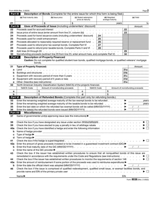 Form 8038 is used by organizations seeking tax-exempt status under section 501(a) to apply for recognition of exemption. The form collects information on the organization's purpose, activities, and finances, as well as its governing structure and history. It also requires information on the organization's officers, directors, and trustees, as well as any related organizations.