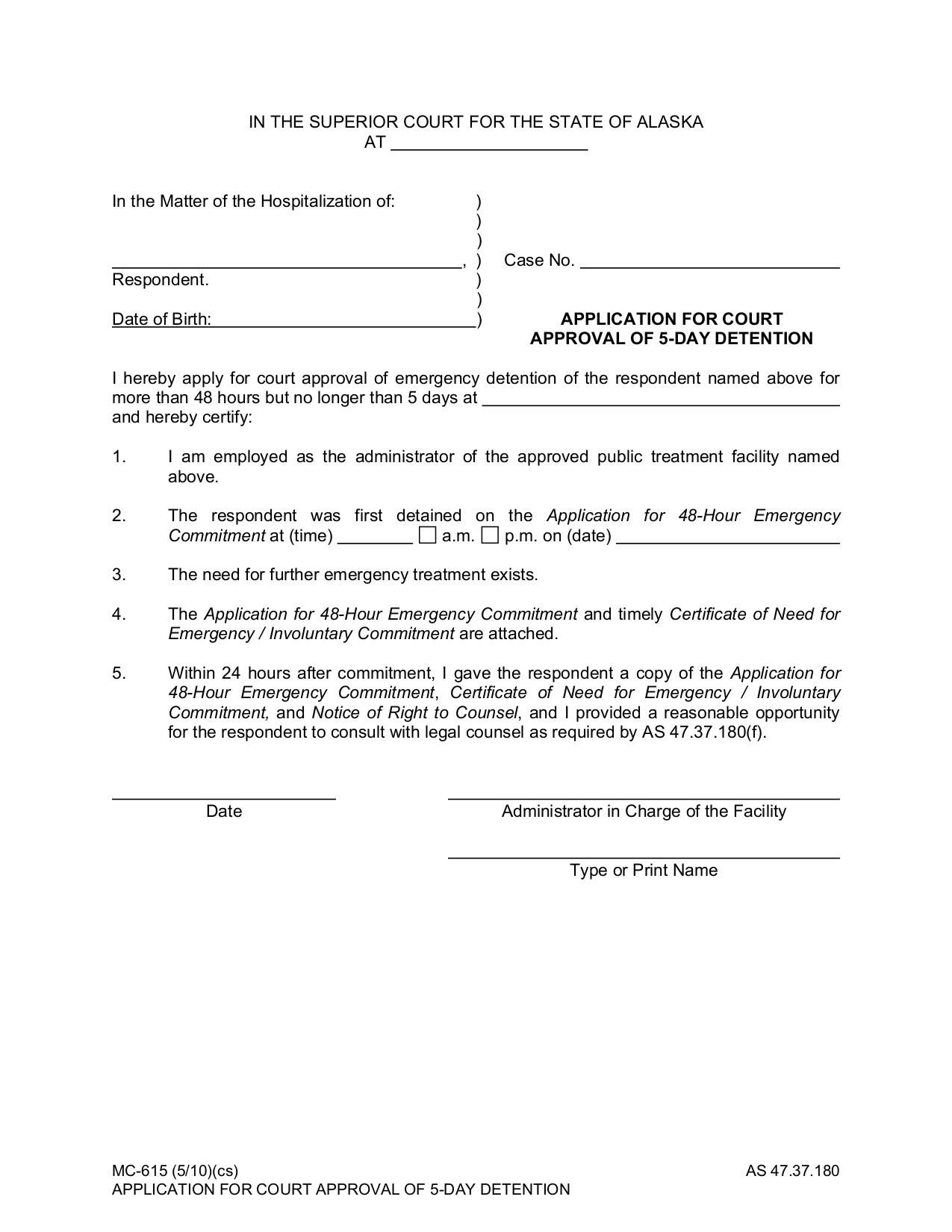 The MC 615 form is used by individuals who need additional time to file an appeal in Alaska.