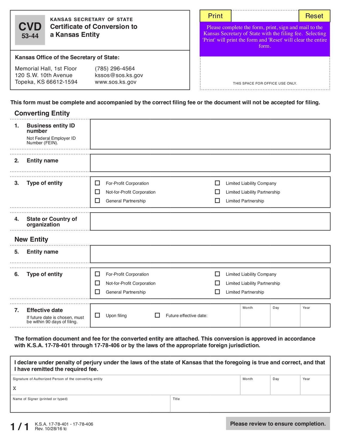 The CVD Form is used for filing a certificate of voluntary dissolution for a business in Kansas.