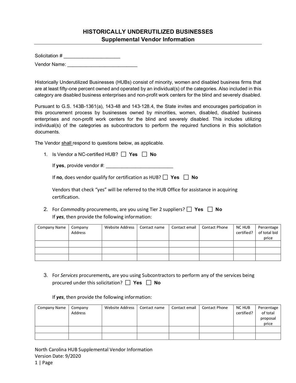 - Form HUB Supplemental Vendor Information - Sep 2020