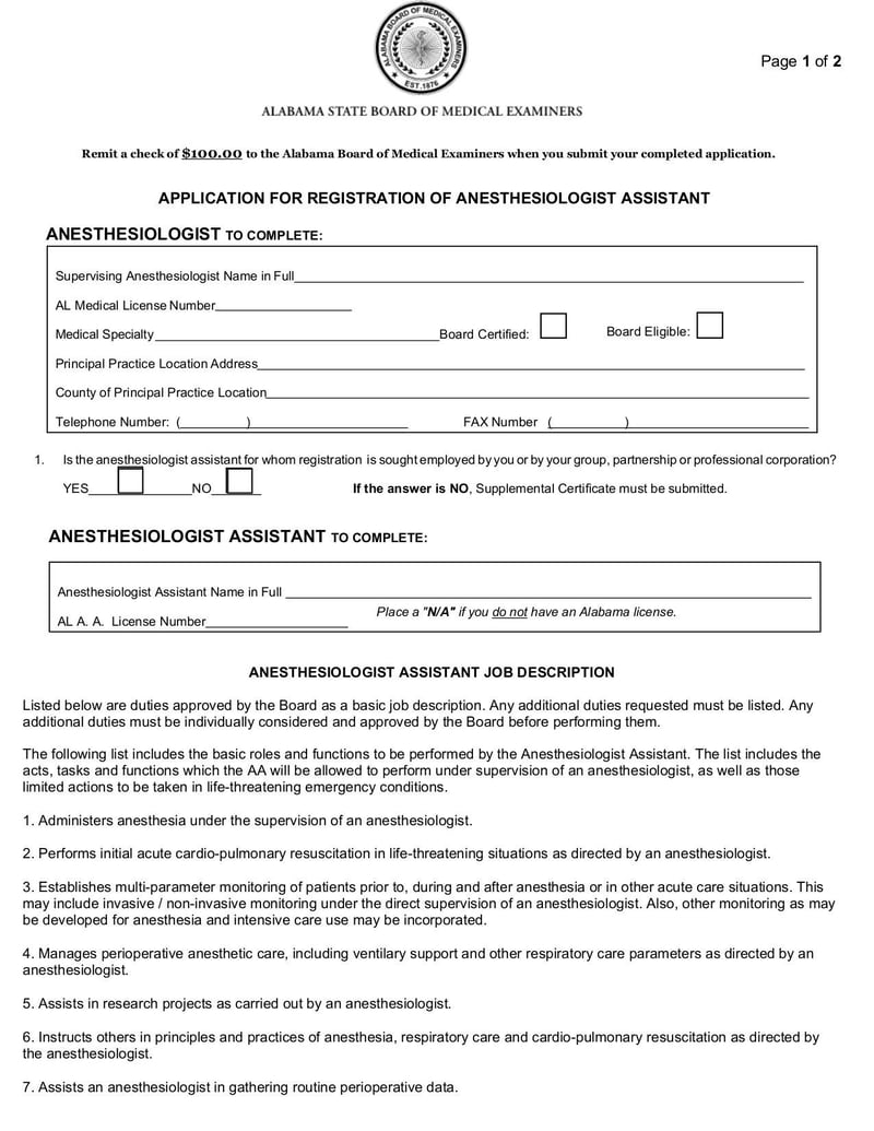 The AAregisapp is a form used by physicians in Alabama to register anesthesiologist assistants.