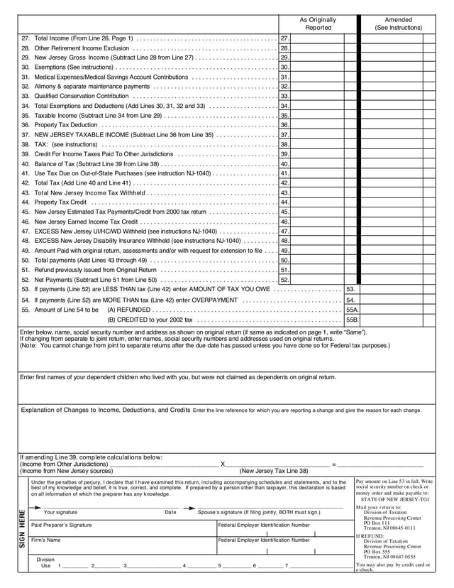 Form NJ-1040X is used by residents of New Jersey to file their state income tax returns.
