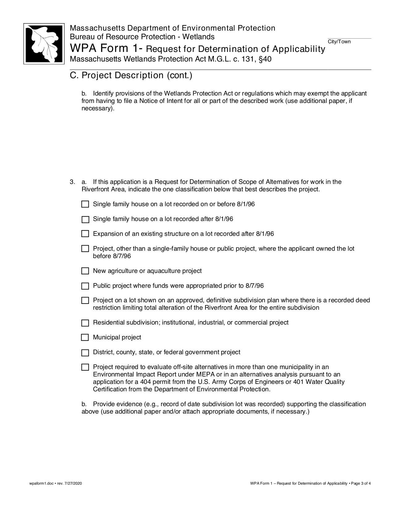 - WPA Form 1: Request for Determination of Applicability - Apr 2023