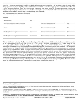 HUD 9886 Authorization for Release of Information - Jul 1994