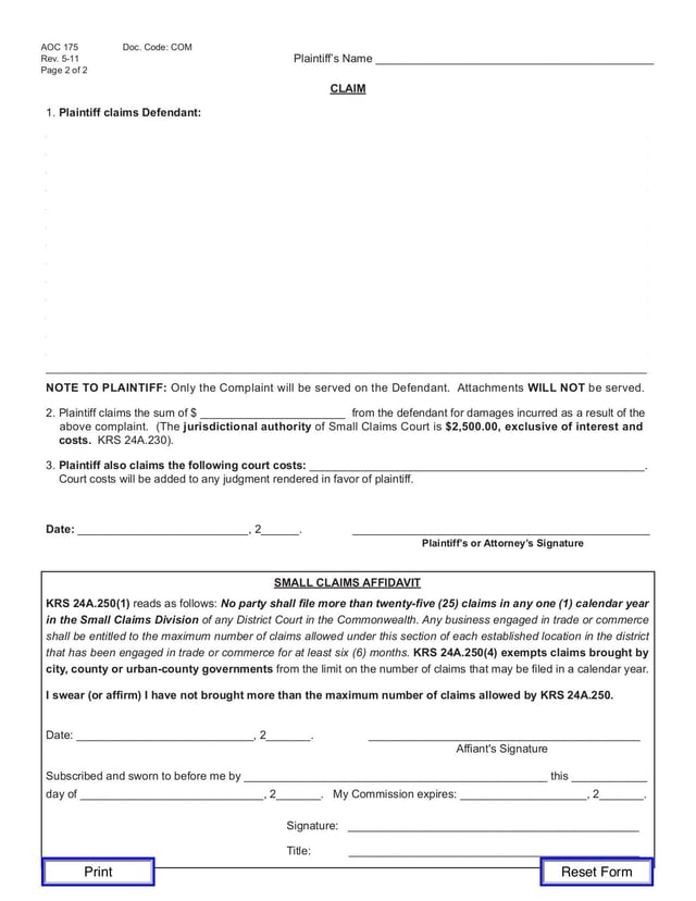 Form AOC-175 is used to request the expungement of criminal records in Kentucky.