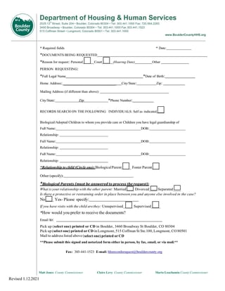 This form is used to request child welfare records from Boulder County.