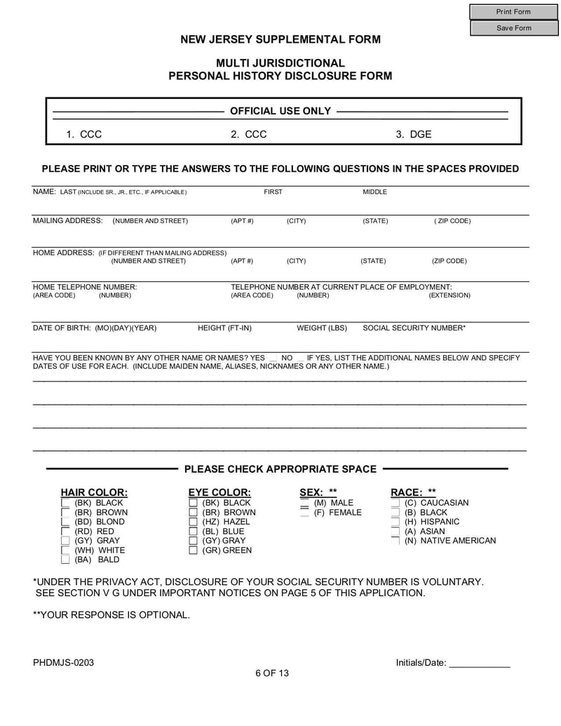 - New Jersey Supplemental Form and Multi Jurisdictional Personal History Disclosure Form - Jan 2013
