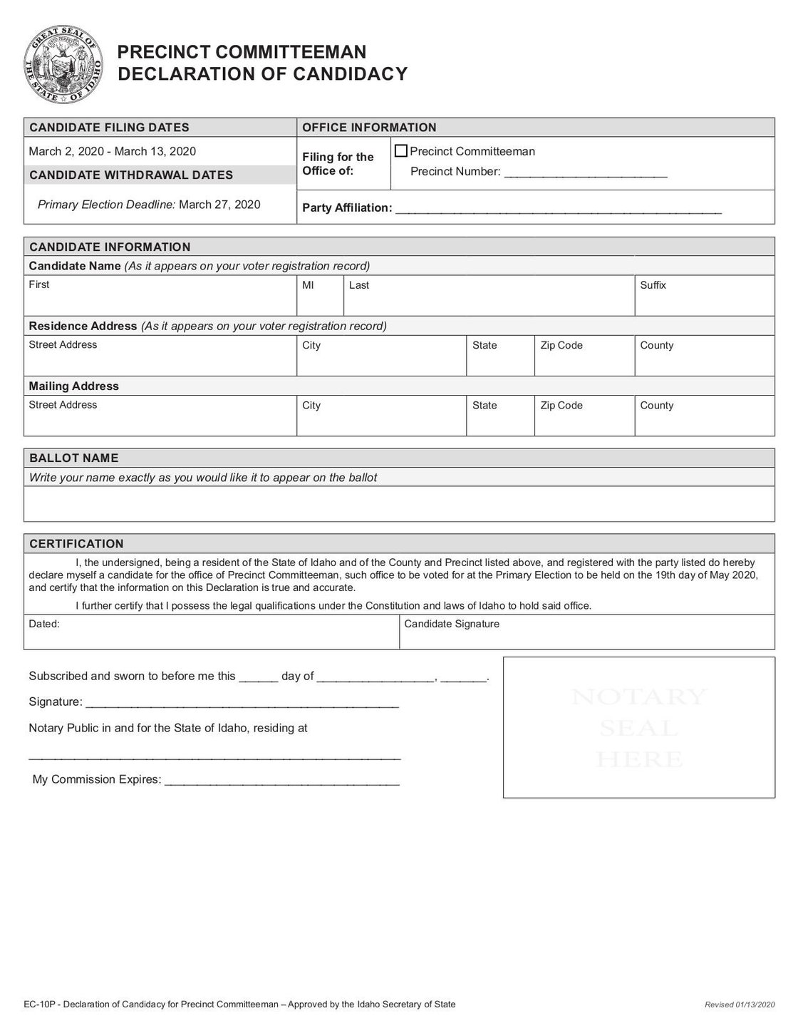 - Precinct Committeeman Declaration of Candidacy - Jan 2020