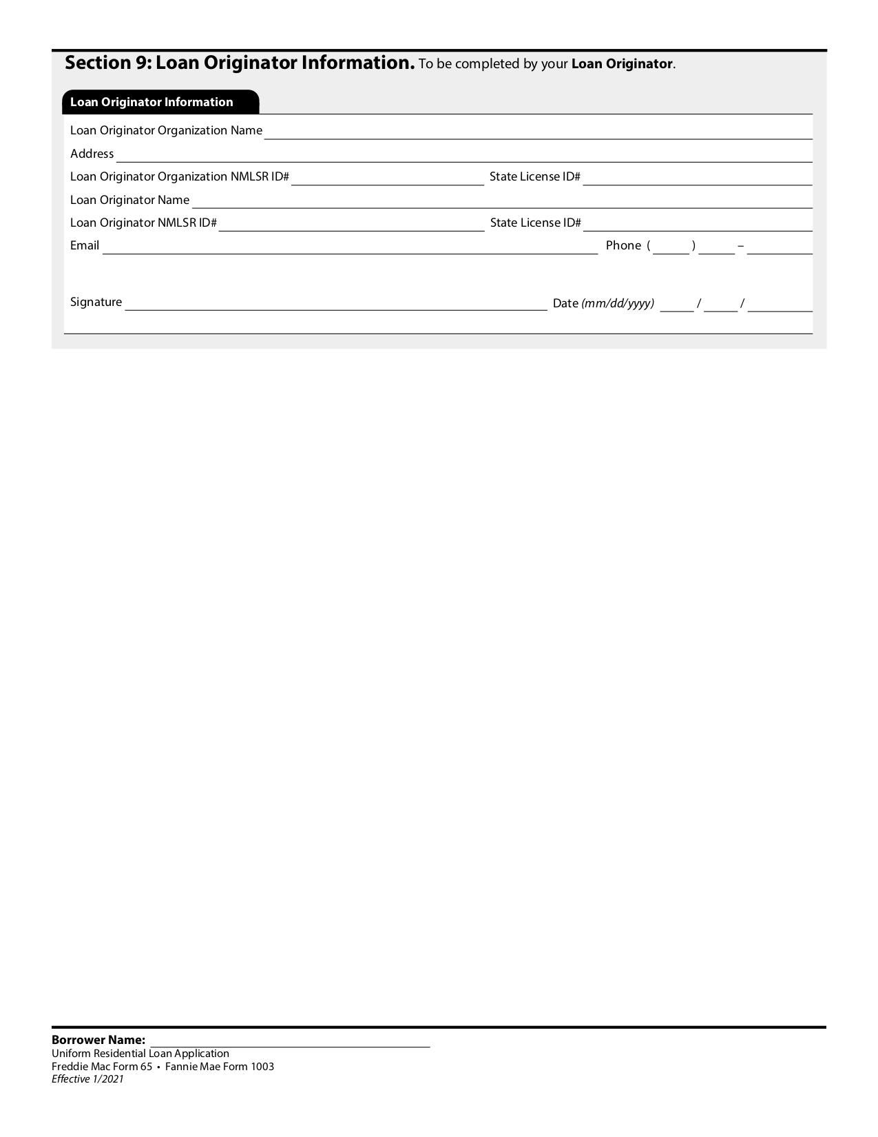 Uniform Residential Loan Application - Borrower Information