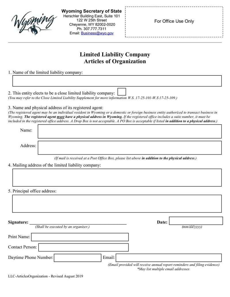 Articles of Organization for a Limited Liability Company.