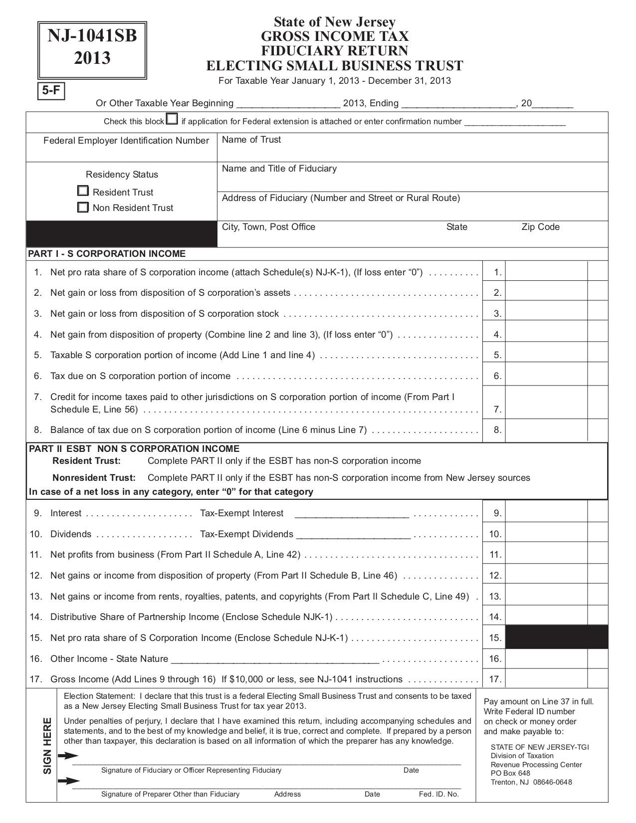 Form NJ-1041SB S Corporation Business Tax Return.