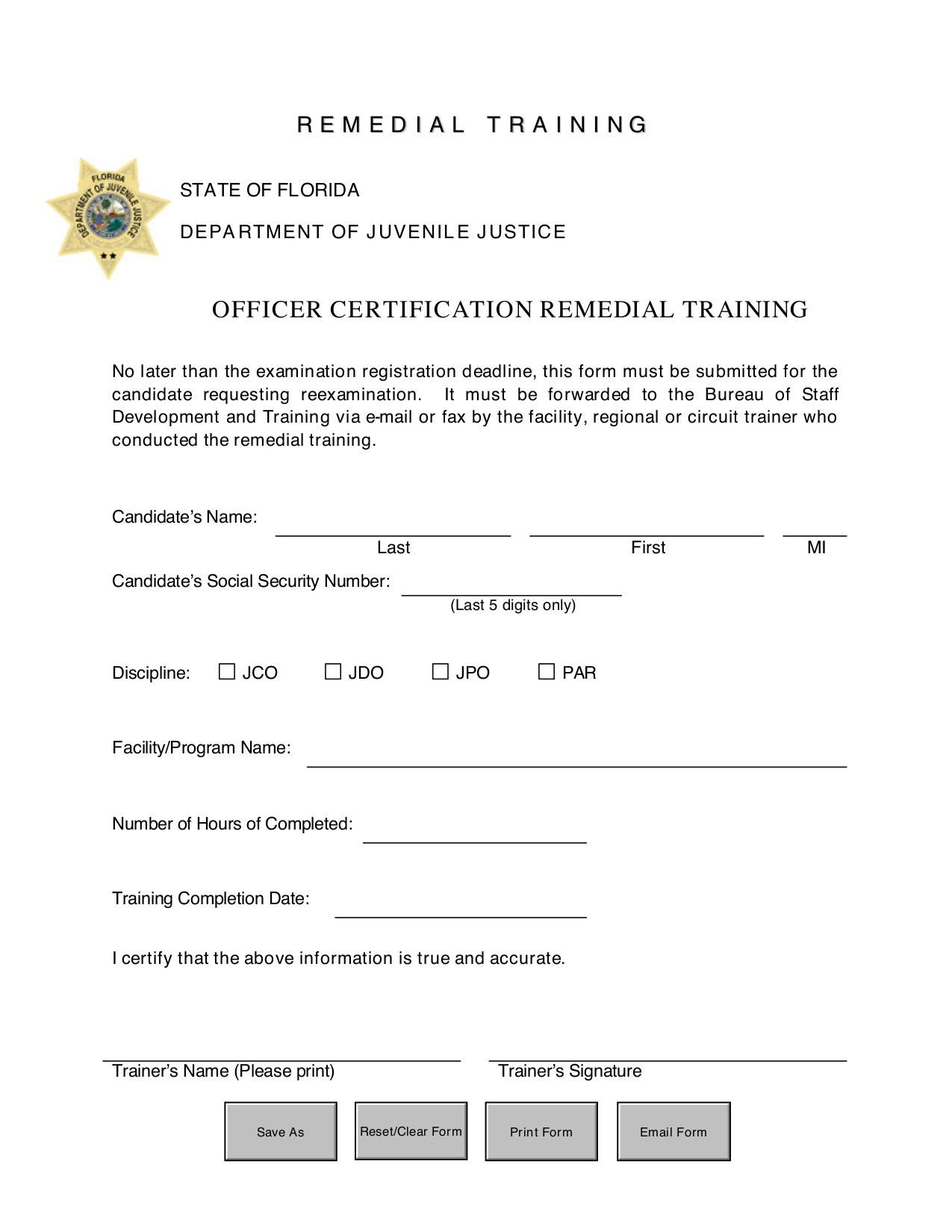Form for requesting remedial training.
