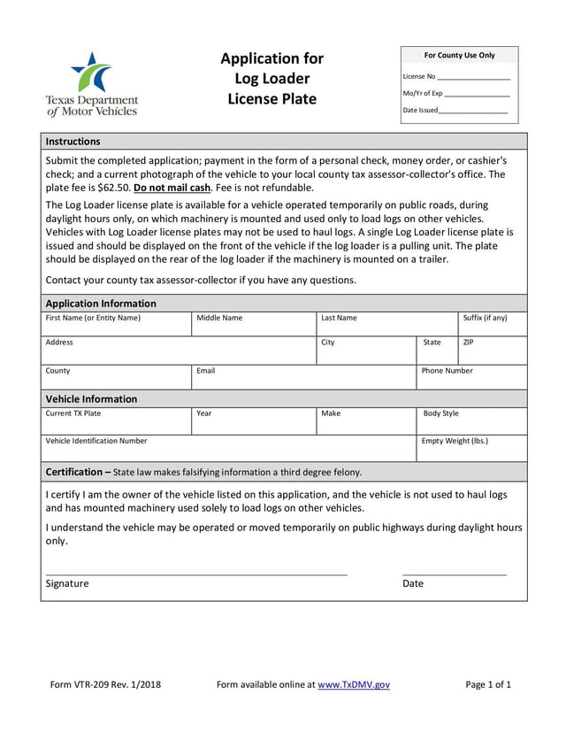 This form is used by disabled veterans to apply for special license plates or parking placards.