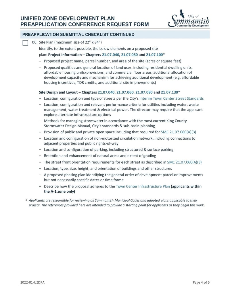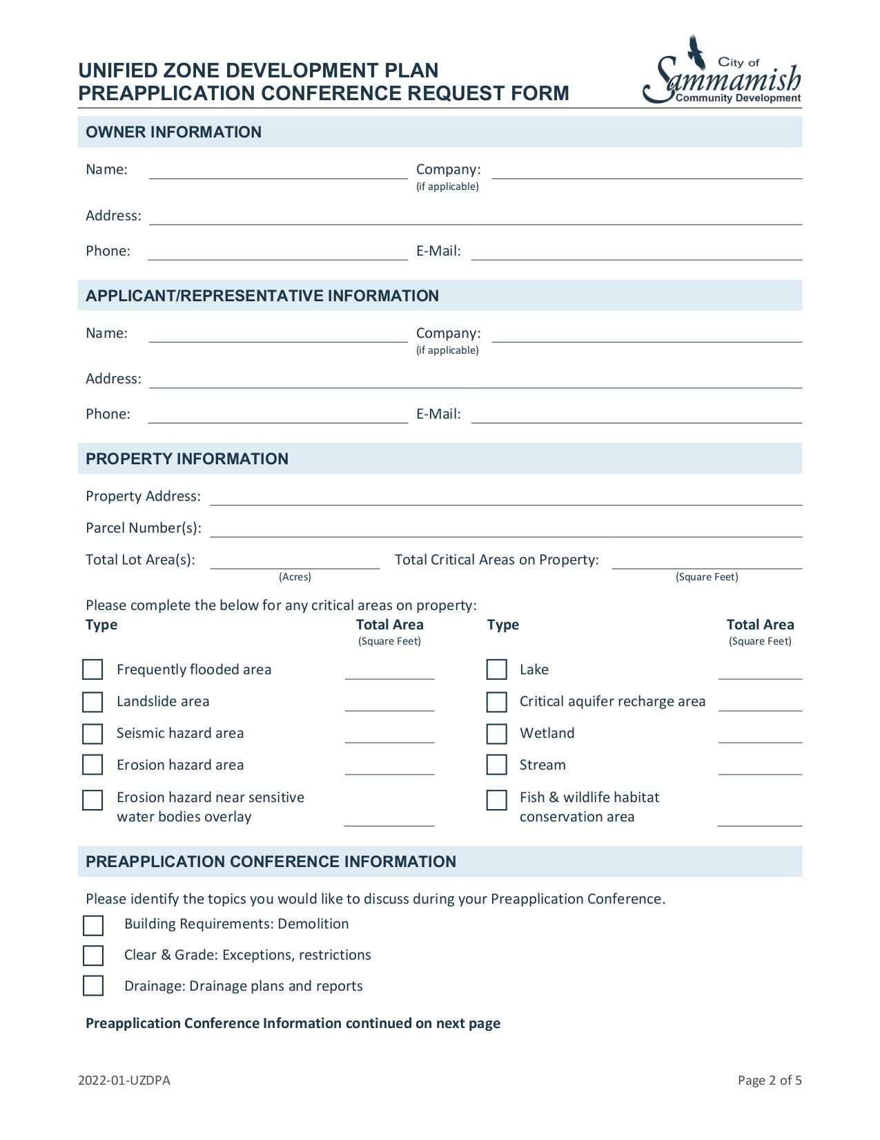 Request form for a preapplication conference for the UZDP program