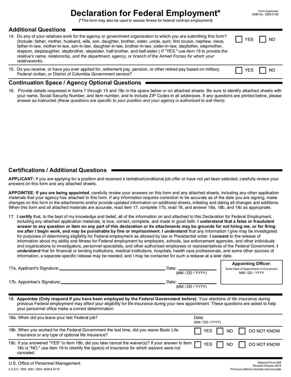 Form OF0306 is used to collect information from individuals who are applying for a federal job.