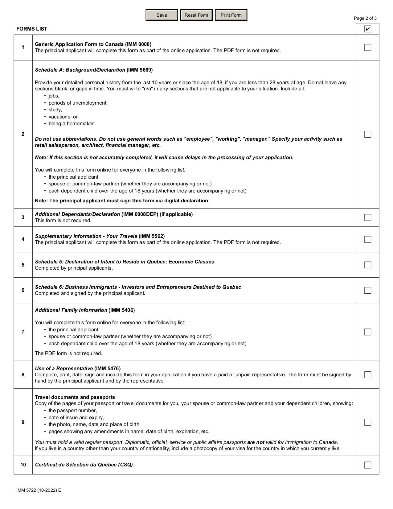 Document Checklist is an application for permanent residence in Quebec for investors and entrepreneurs.