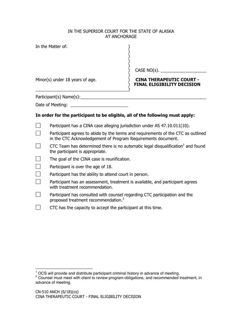 The Form CN-510 ANCH is for individuals participating in the CINA Therapeutic Court.