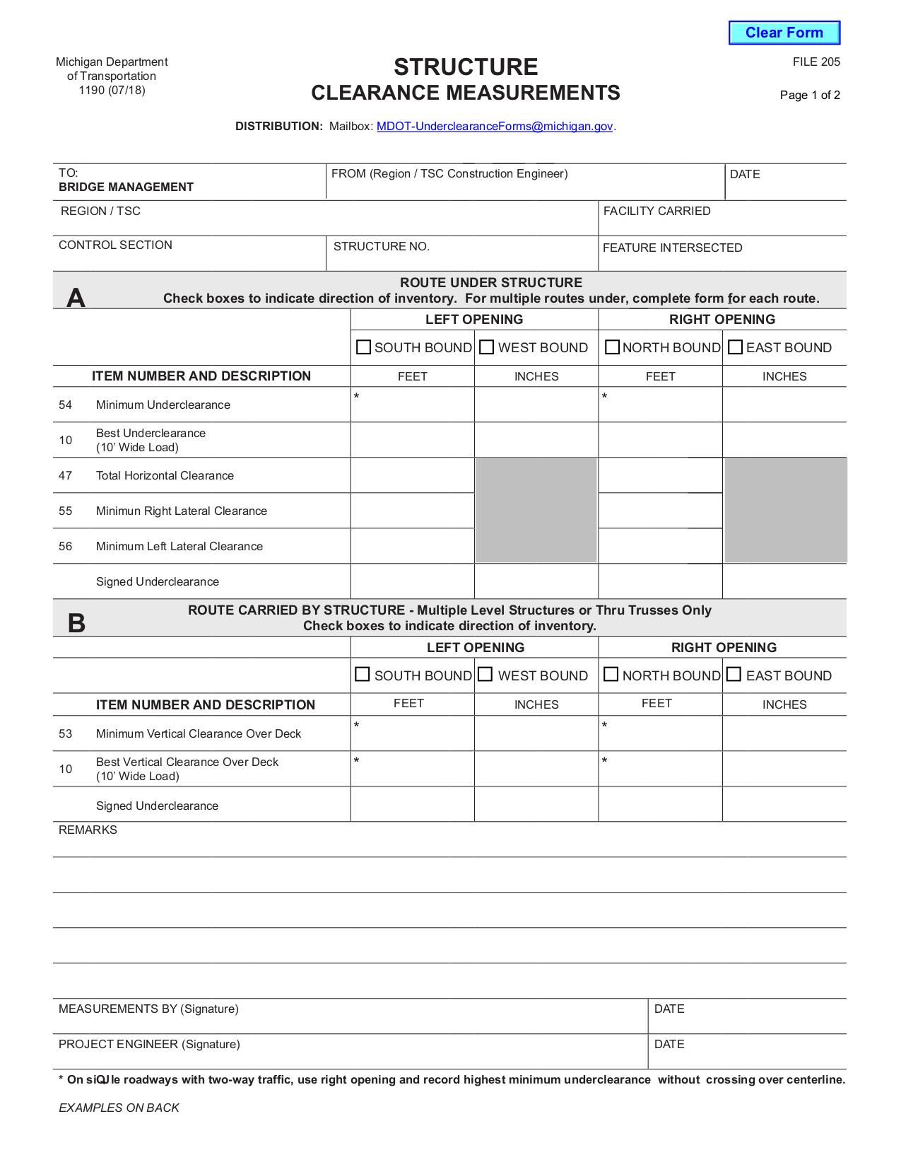 MDOT Form 1190M - Jul 2018