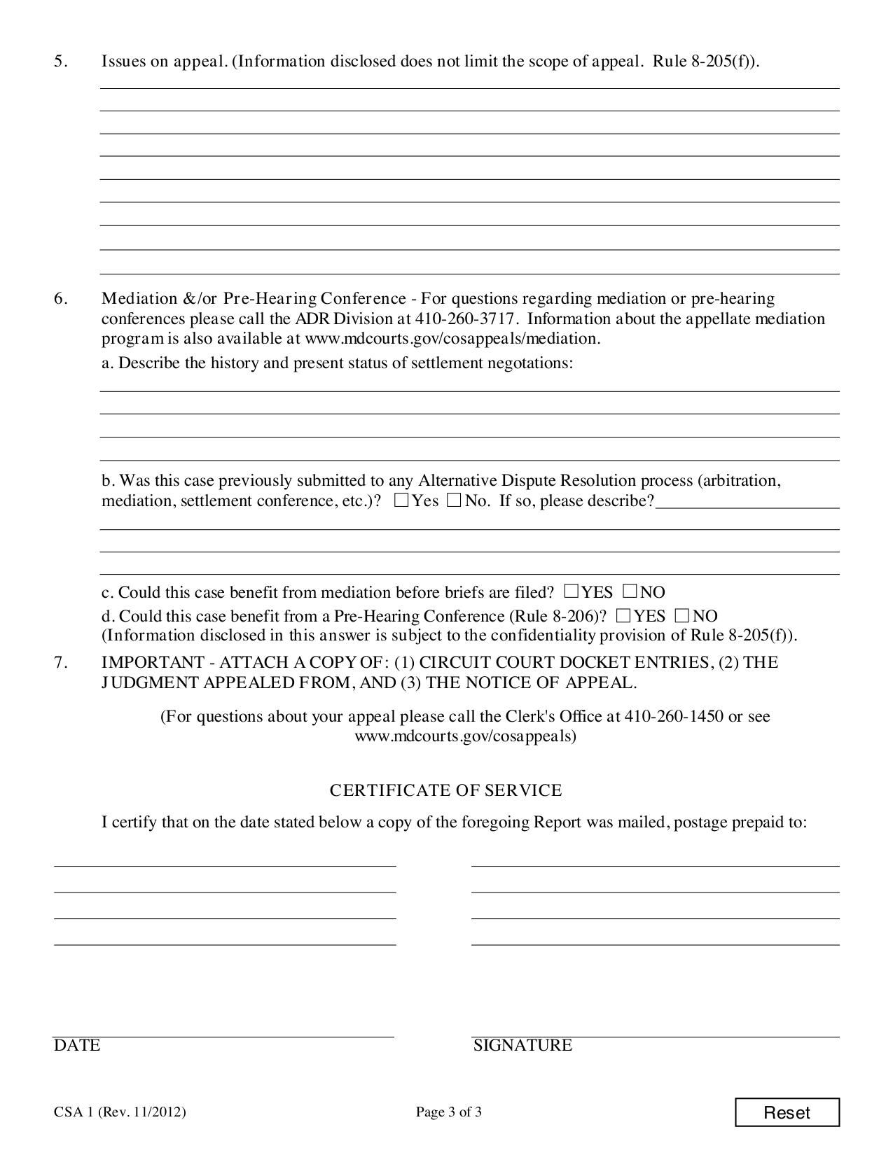 This form is used to initiate an appeal to the Court of Special Appeals of Maryland.