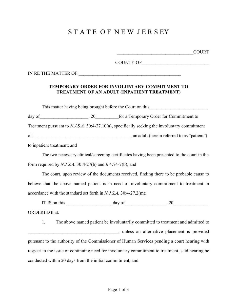 This form is used to request an involuntary commitment of an individual to a mental health facility for a temporary period of time.