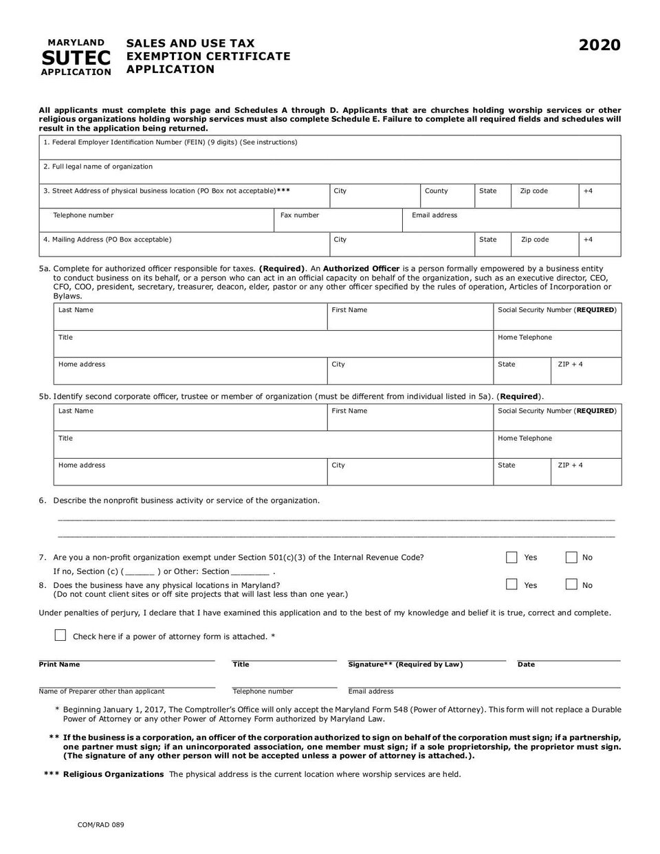 - Sales and Use Tax Exemption Certificate Application (SUTEC) - Jan 2020