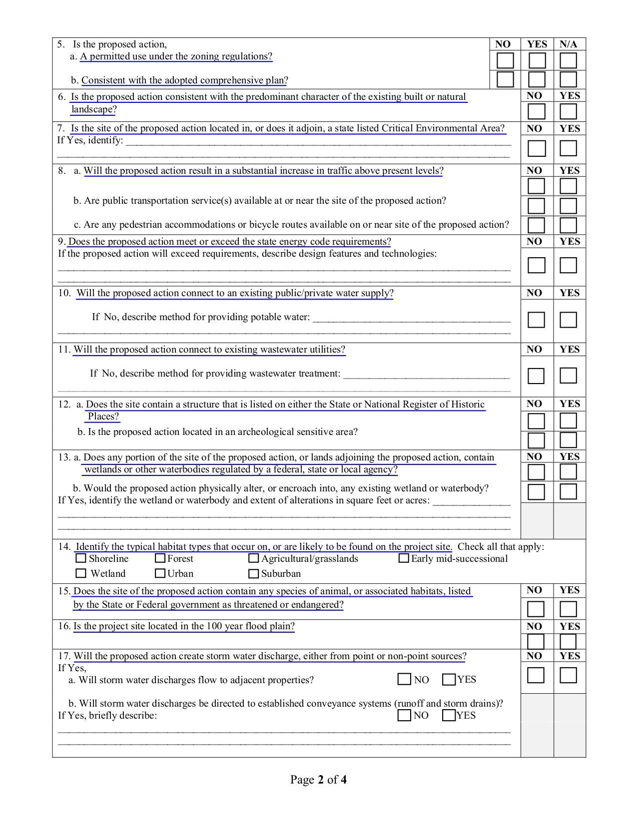 This is the Short Environmental Assessment Form (SEAF) used by the Town of Kinderhook for State Environmental Quality Review (SEQR) purposes.