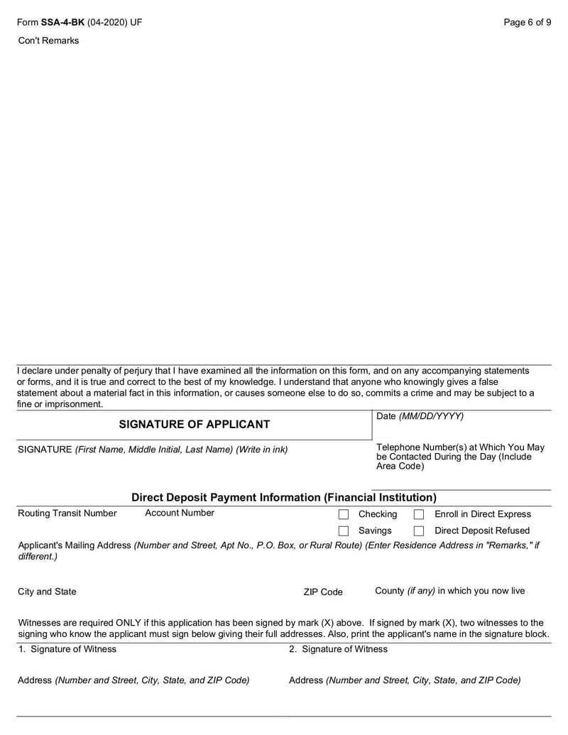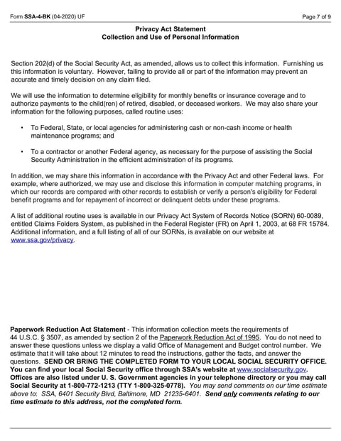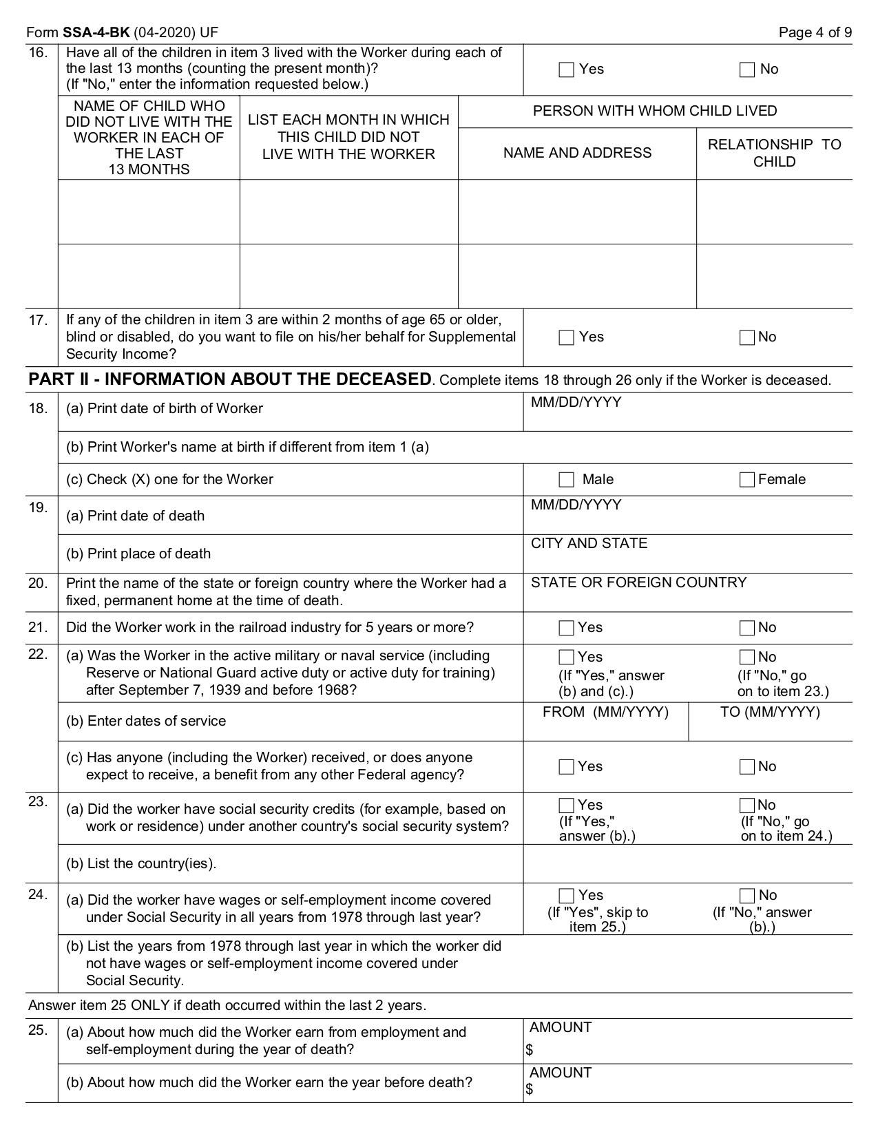 SSA-4-BK Form - May 2020