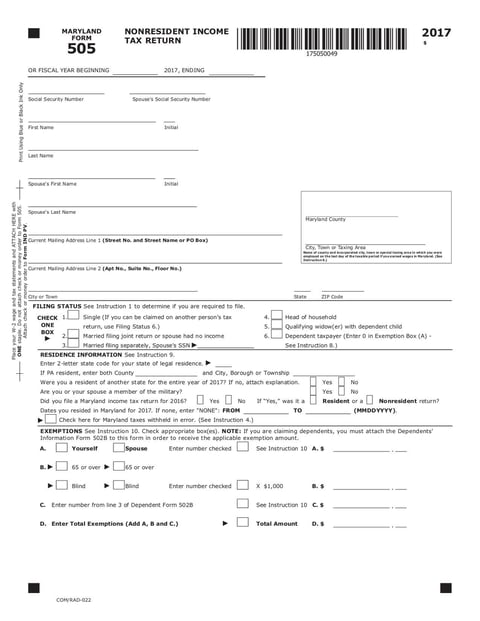 - Maryland Form 505 - Jan 2018