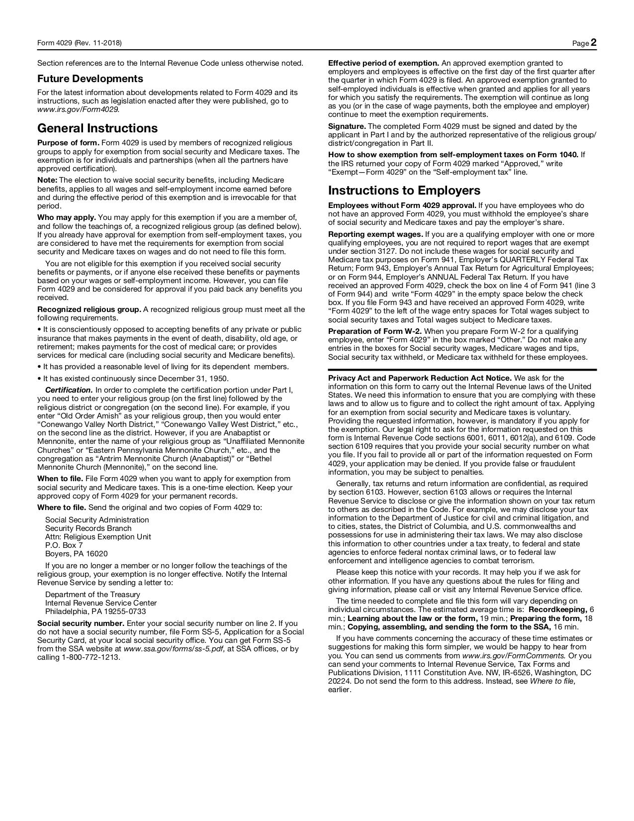 Form 4029 is used by members of recognized religious groups to apply for exemption from paying social security and Medicare taxes and waive benefits under these programs.
