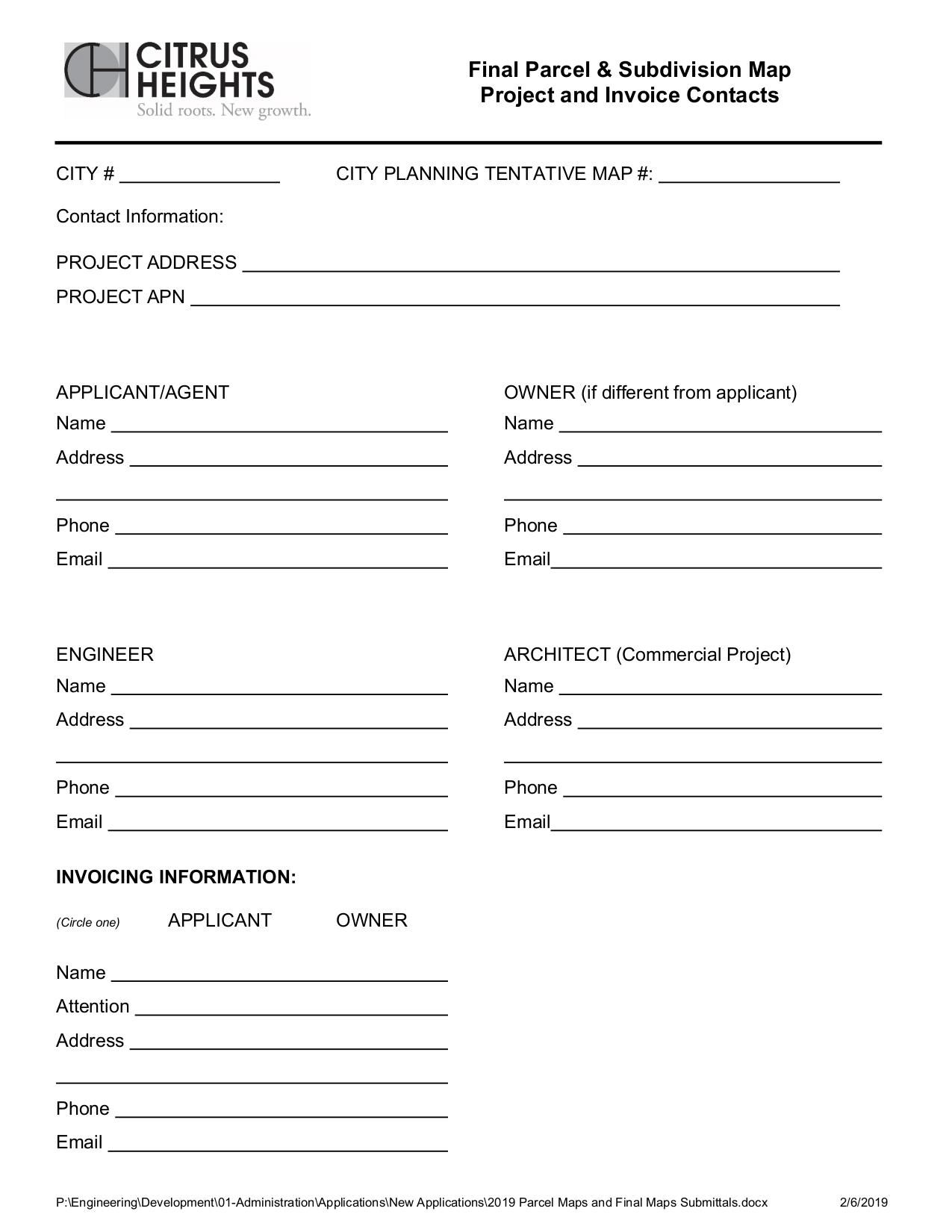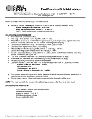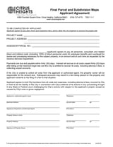 The form is used for submitting parcel maps and final maps to Citrus Heights.