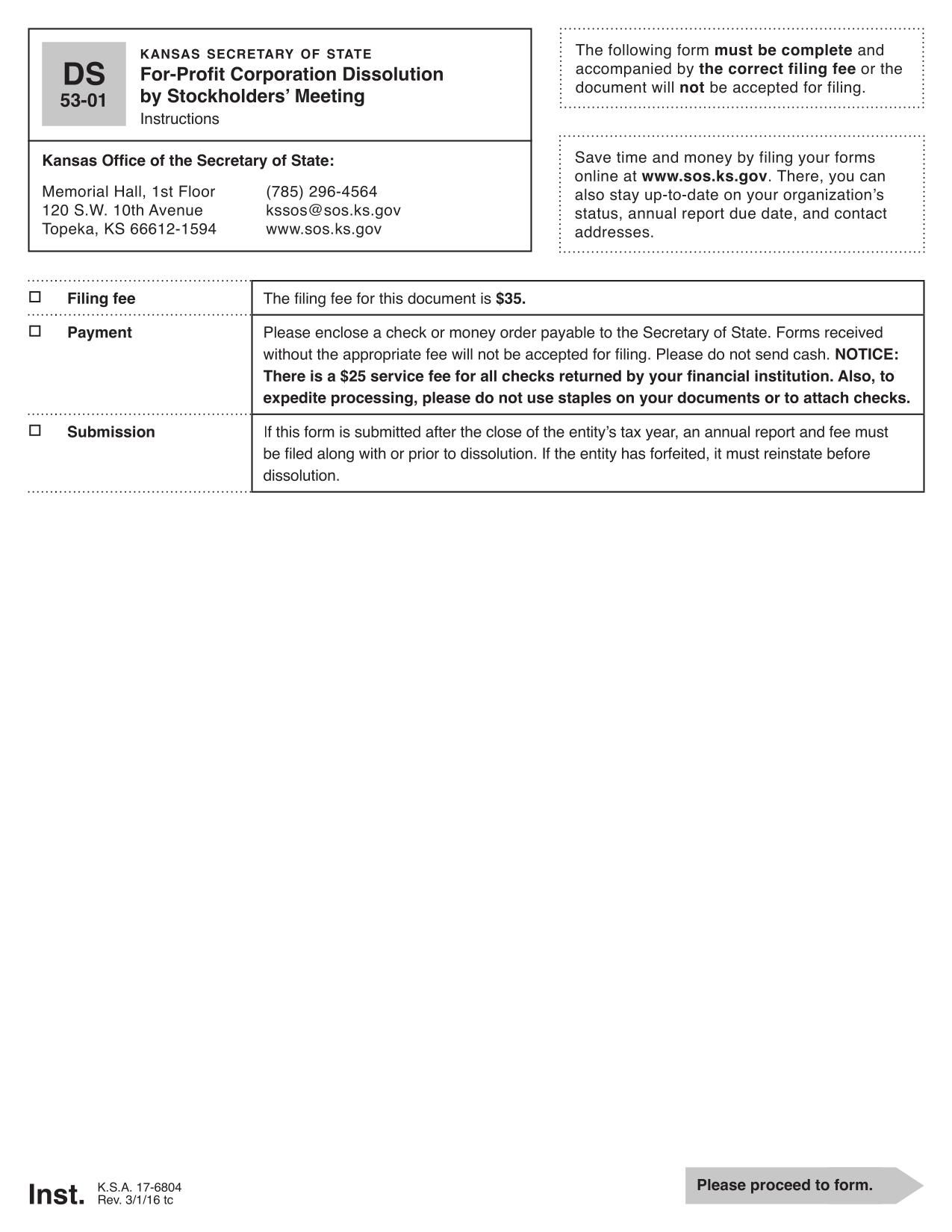 The Form DS 53-01 is used for submitting the filing fee for documents with the Kansas Secretary of State.