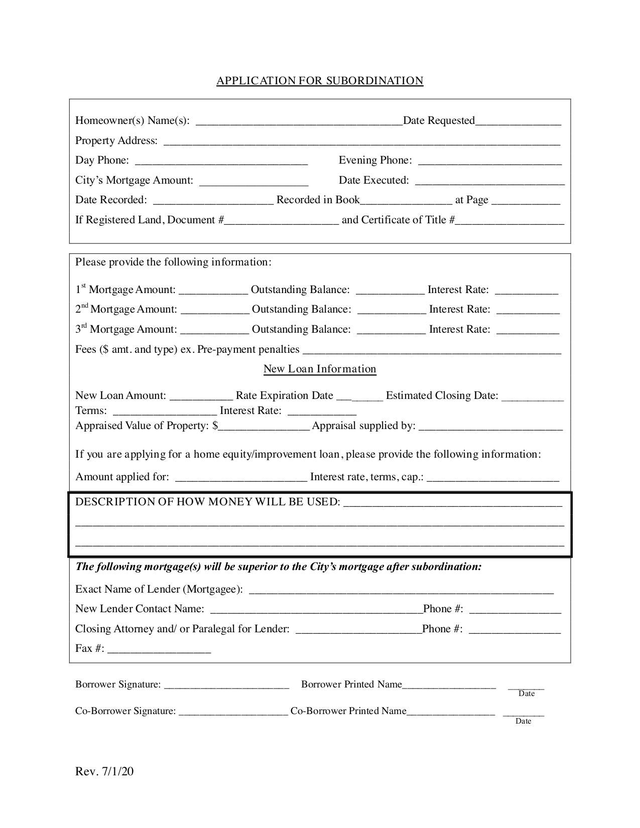 The form is for individuals who want to apply for mortgage subordination.
