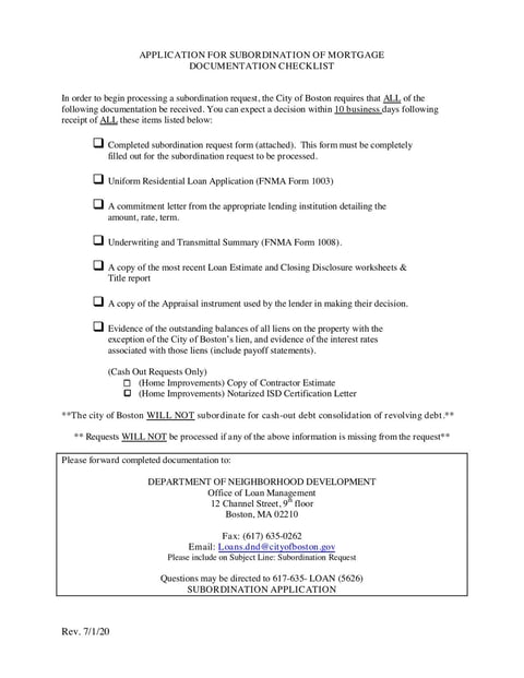- Application for Subordination of Mortgage Documentation Checklist - Jul 2021