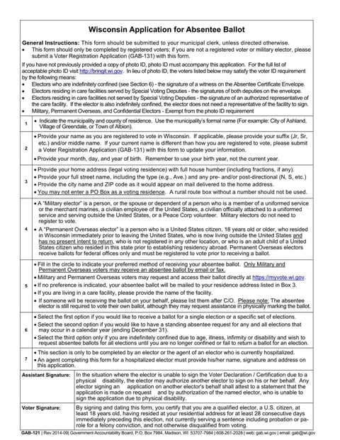 The Form GAB-121 is used by Wisconsin voters who are unable to vote in person.