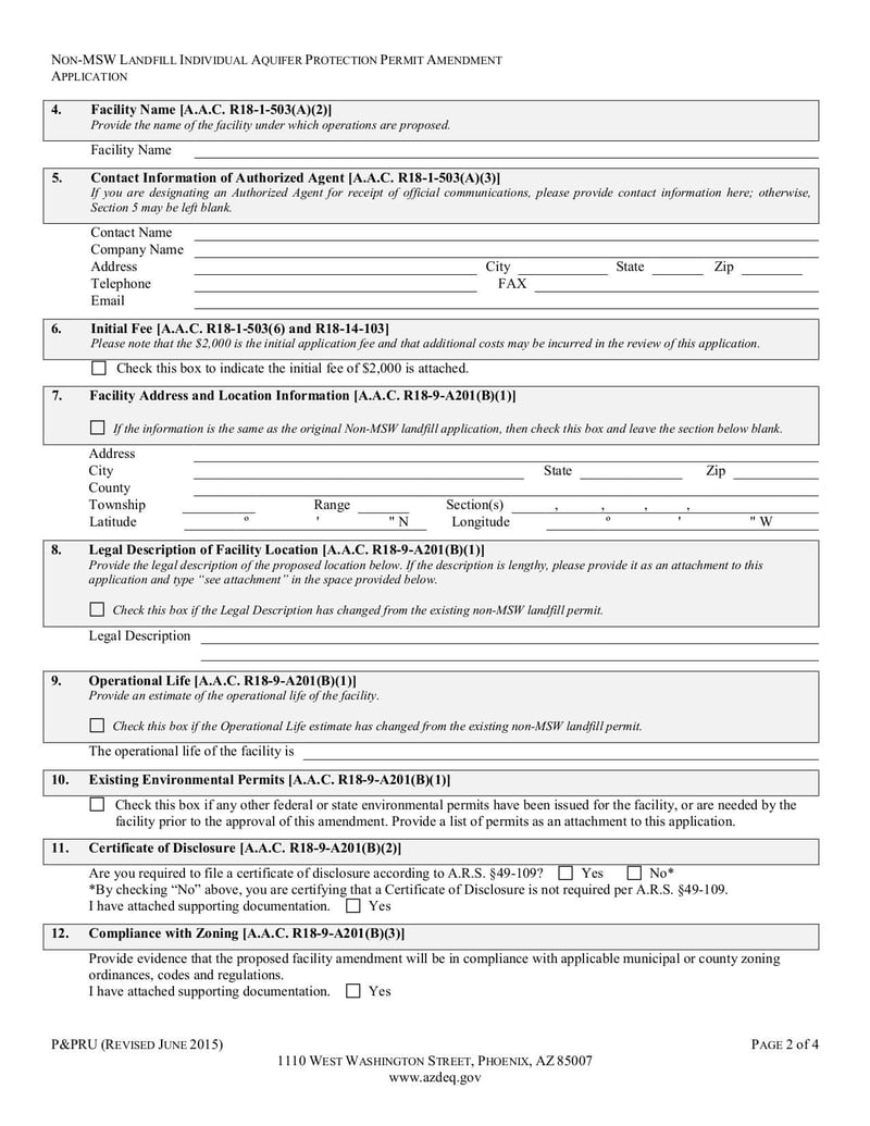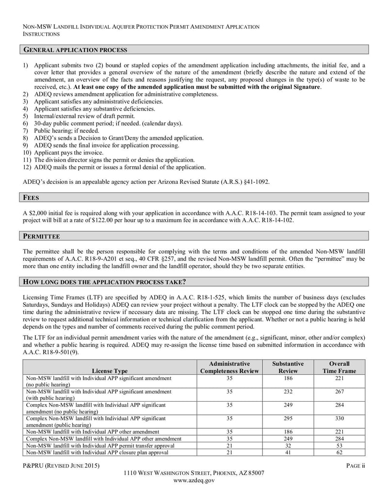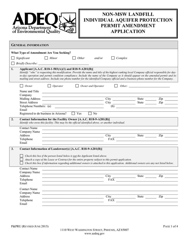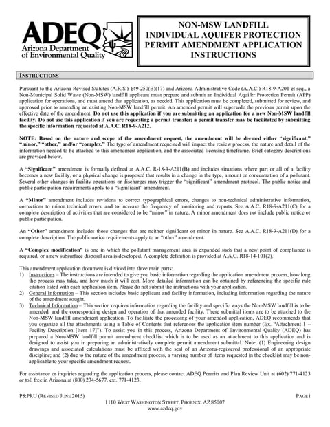 - Individual Aquifer Protection Permit Amendment Application and Instructions - Jun 2015