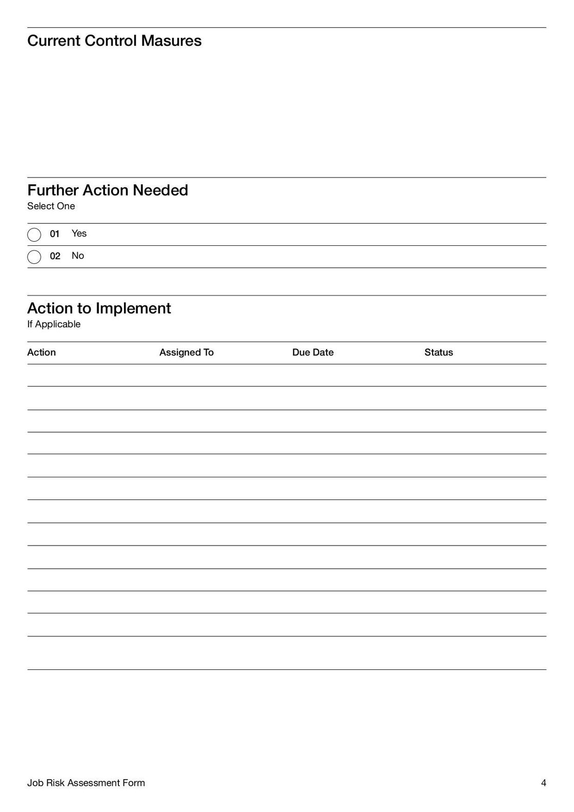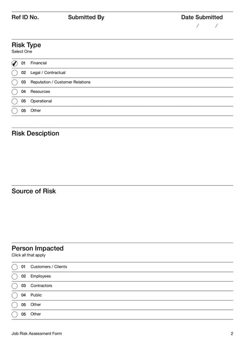 - Job Risk Assessment Form Template