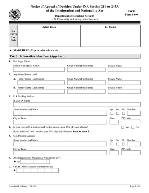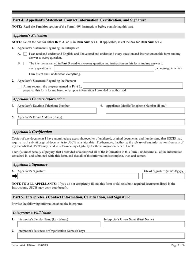 - Form I-694 - Dec 2019