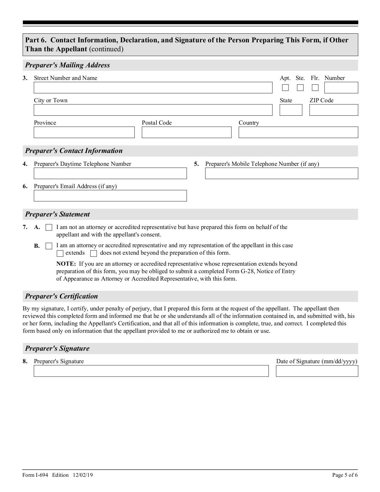 Form I-694 - Dec 2019