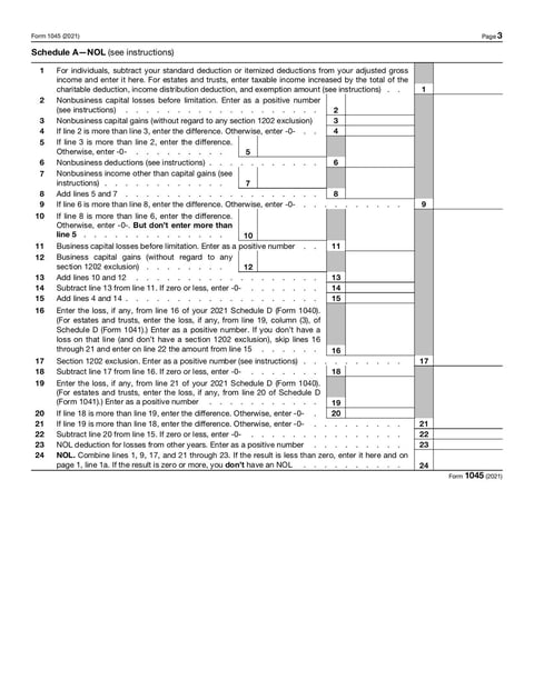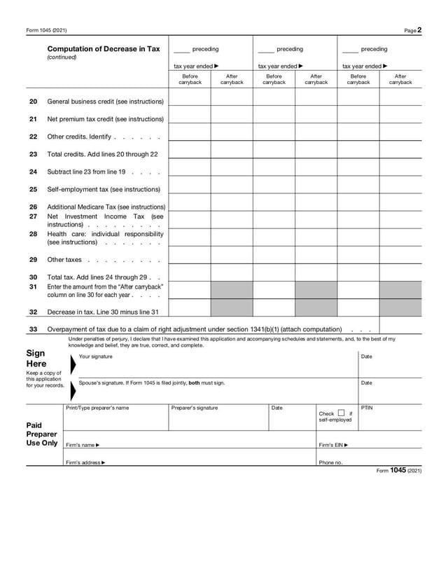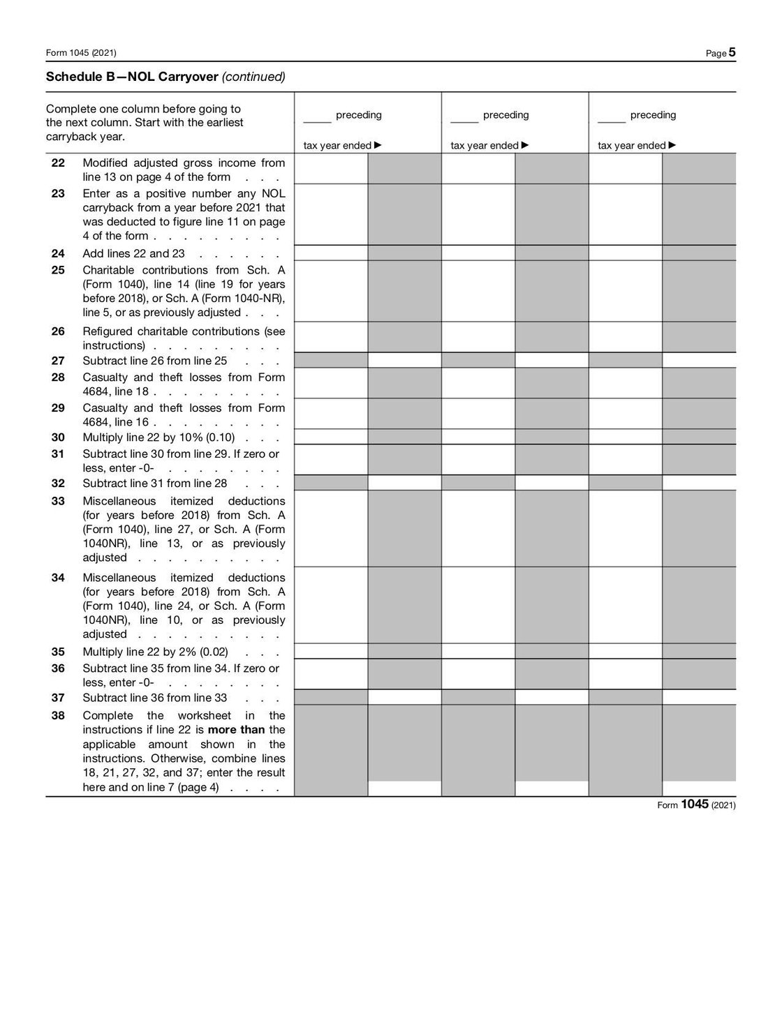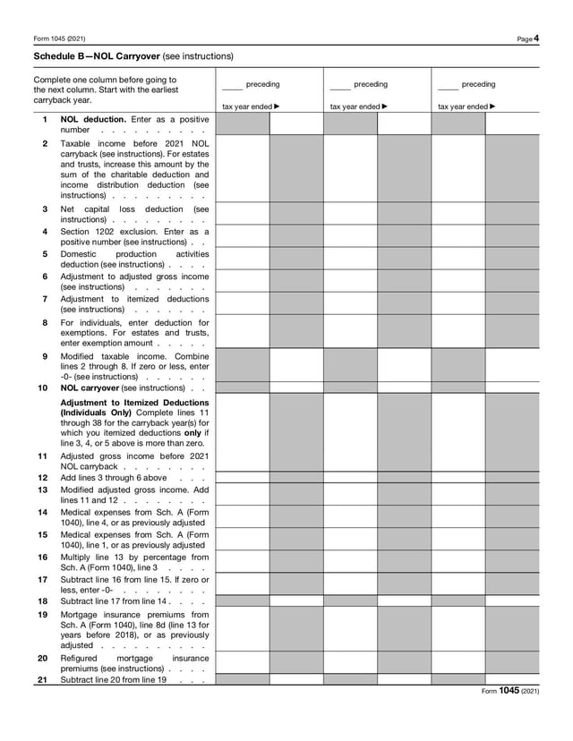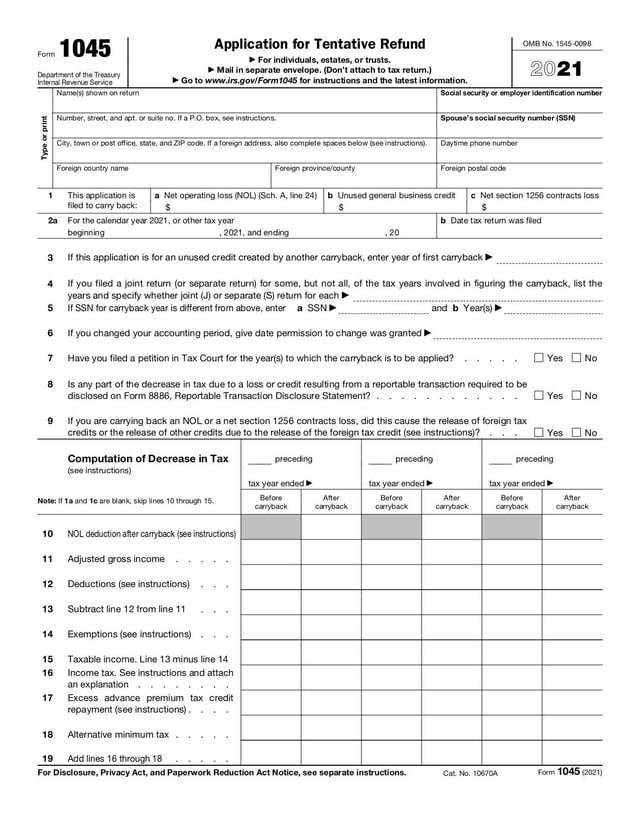 This is an accessible version of Form 1045, Application for Tentative Refund.