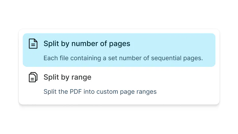 Sélectionnez les pages par plage ou choisissez de fractionner par nombre de pages.