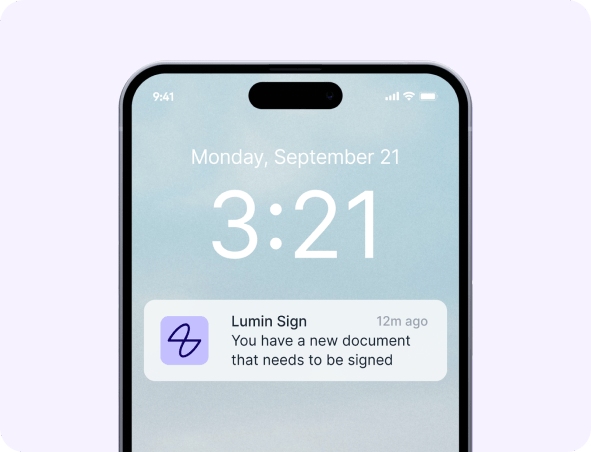 Don’t let anything slip. Lumin Sign’s eSign dashboard helps you track multiple deals from start to finish with full visibility. Set automatic notifications and reminders to stay in control and prompt clients before deadlines are reached.