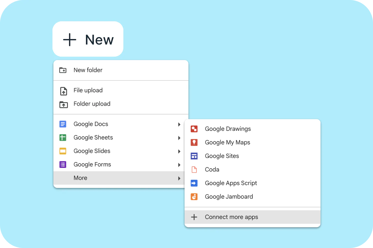 Open Google Drive and click the big ‘New’ button in the top left.