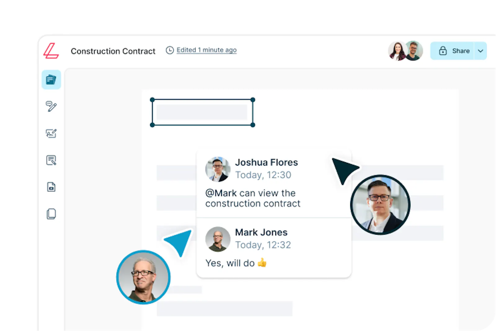 Create an AI-generated contract, collaborate with your team, edit and send for signing. What used to take weeks can happen in minutes with Lumin.